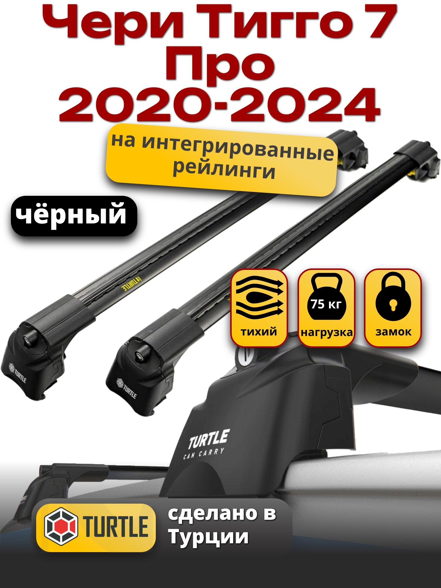 Багажник на крышу Чери Тигго 7 Про 2019-2022 на интегрированные рейлинги, черный, Turtle Air-2 информация:
