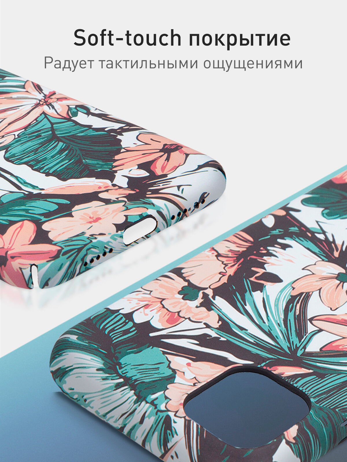 Тонкий пластиковый чехол для Apple iPhone 11 (Эпл Айфон 11) с принтом "Тропический сад" и матовым soft-touch покрытием, голубой ROSCO 408 ₽