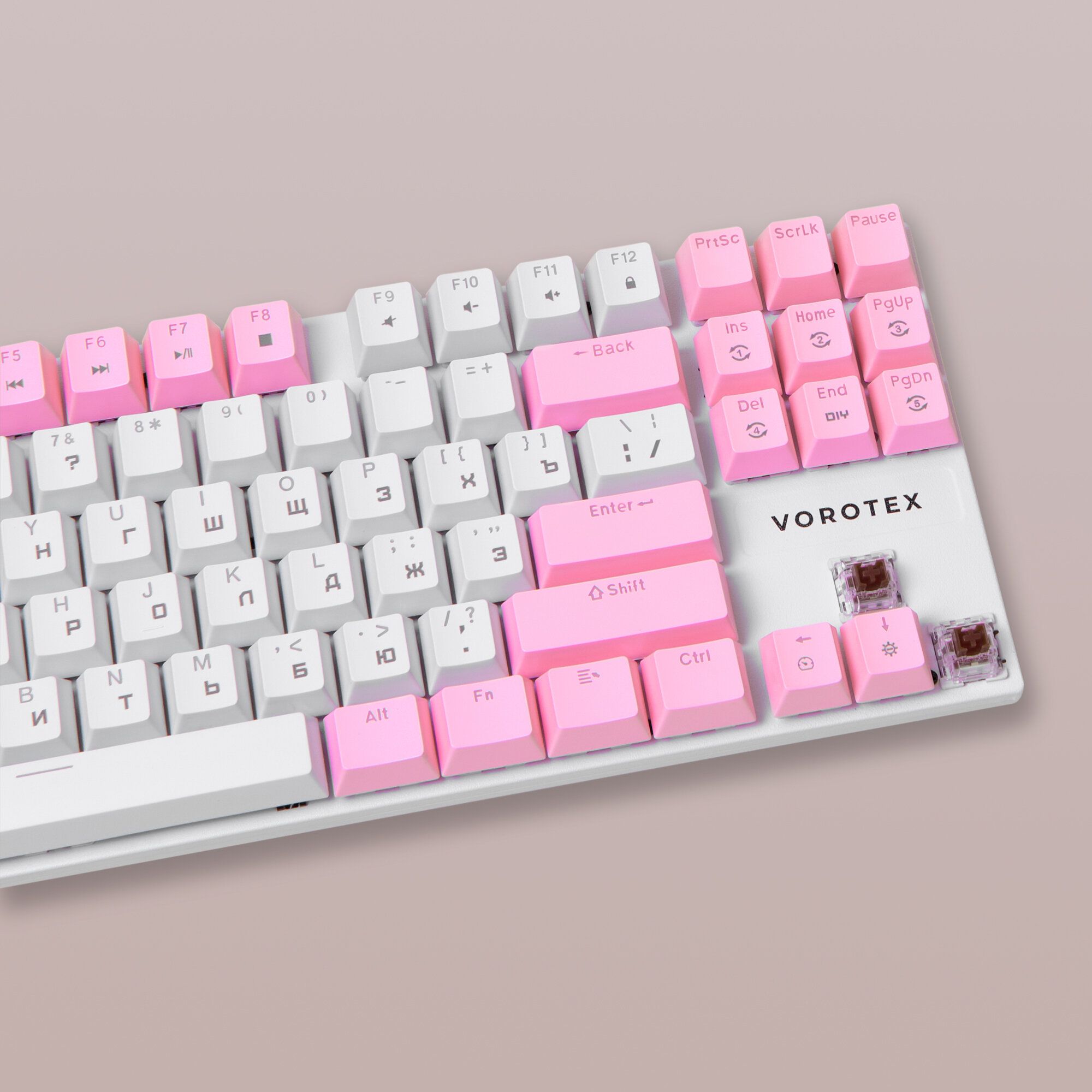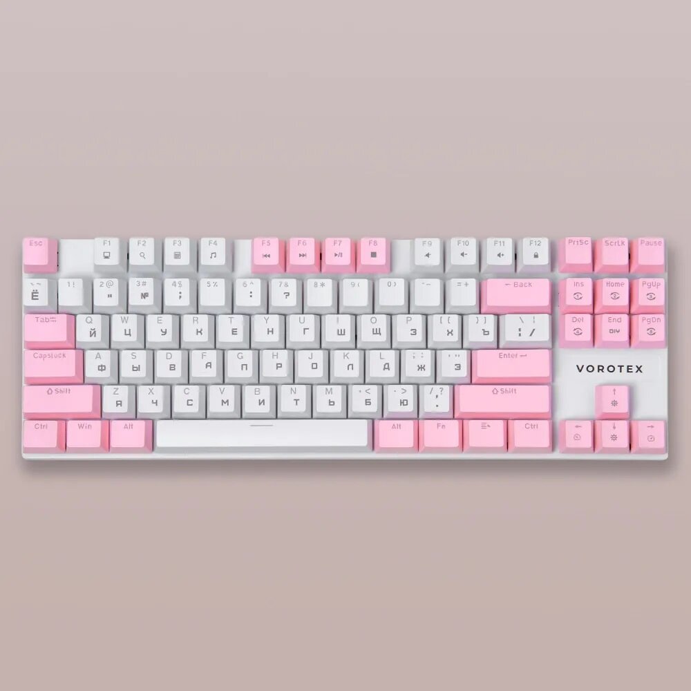 Игровая клавиатура VOROTEX K87S Red Switch, розовый/белый, русская