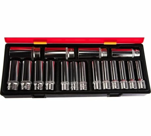 10 цен на JTCK4171 JTC Набор головок торцевых 1/2" 6-ти гранных 10-32мм глубоких 17 предметов в кейсе JTC