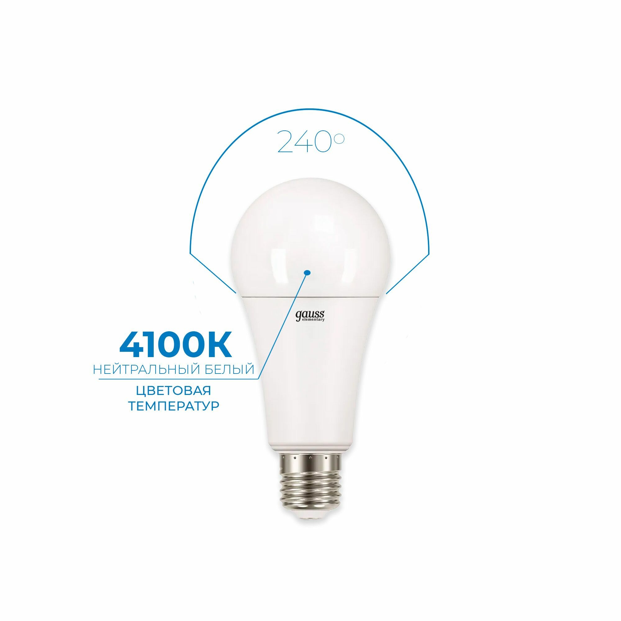 Светодиодная лампа GAUSS Elementary А70 25W 2100lm 4100K E27 LED 1/10/50 249 ₽