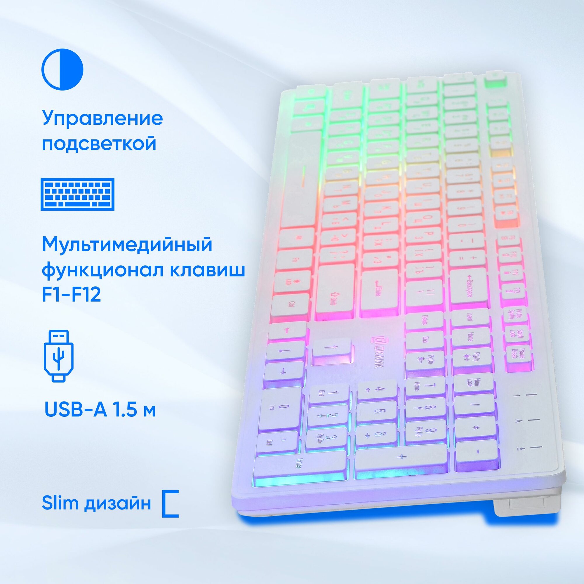 Клавиатура Оклик 550ML white USB slim Multimedia LED информация: