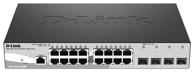 D-Link DGS-1210-20/ME/A1A Управляемый L2 коммутатор с 16 портами 10/100/1000Base-T и 4 портами 1000Base-X SFP информация: