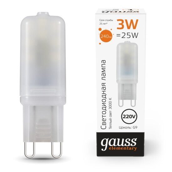 Отзывы на Светодиодная лампа Gauss Elementary G9 AC220-240V 3W 240lm 3000K пластик LED 1/10/200