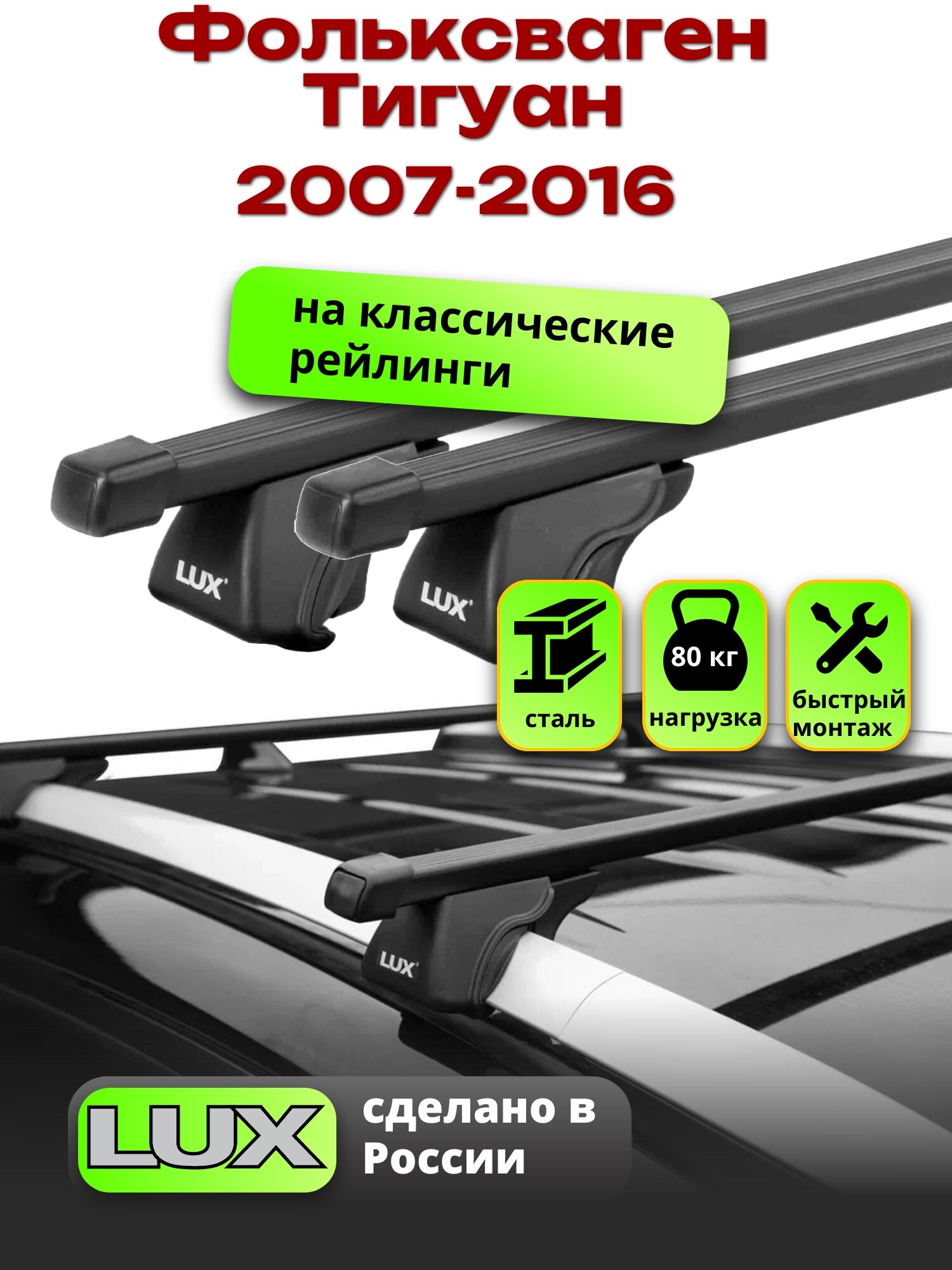 Багажник на крышу Фольксваген Тигуан 2007-2016 на рейлинги, черный, LUX классик информация: