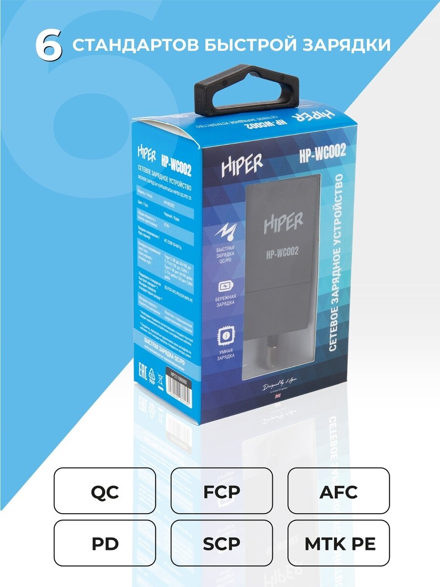 Отзывы на Сетевое зарядное устройство (адаптер питания) HIPER HP-WC003, до 20Вт, USB, USB Type-C, Черный HP-WC003