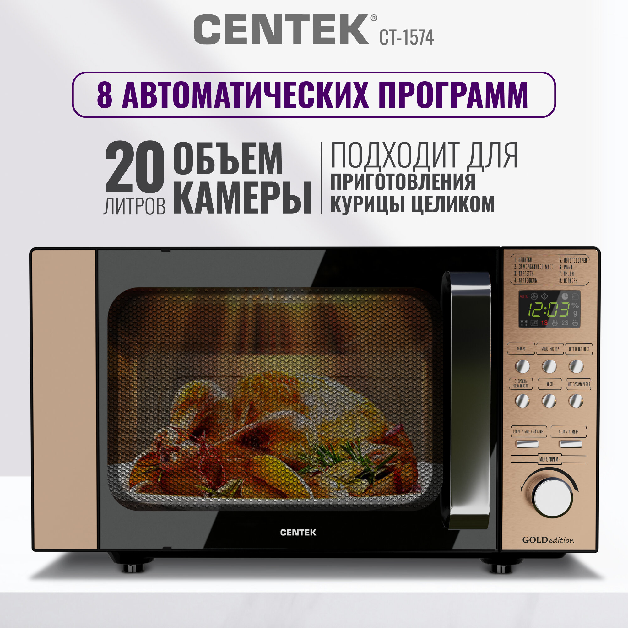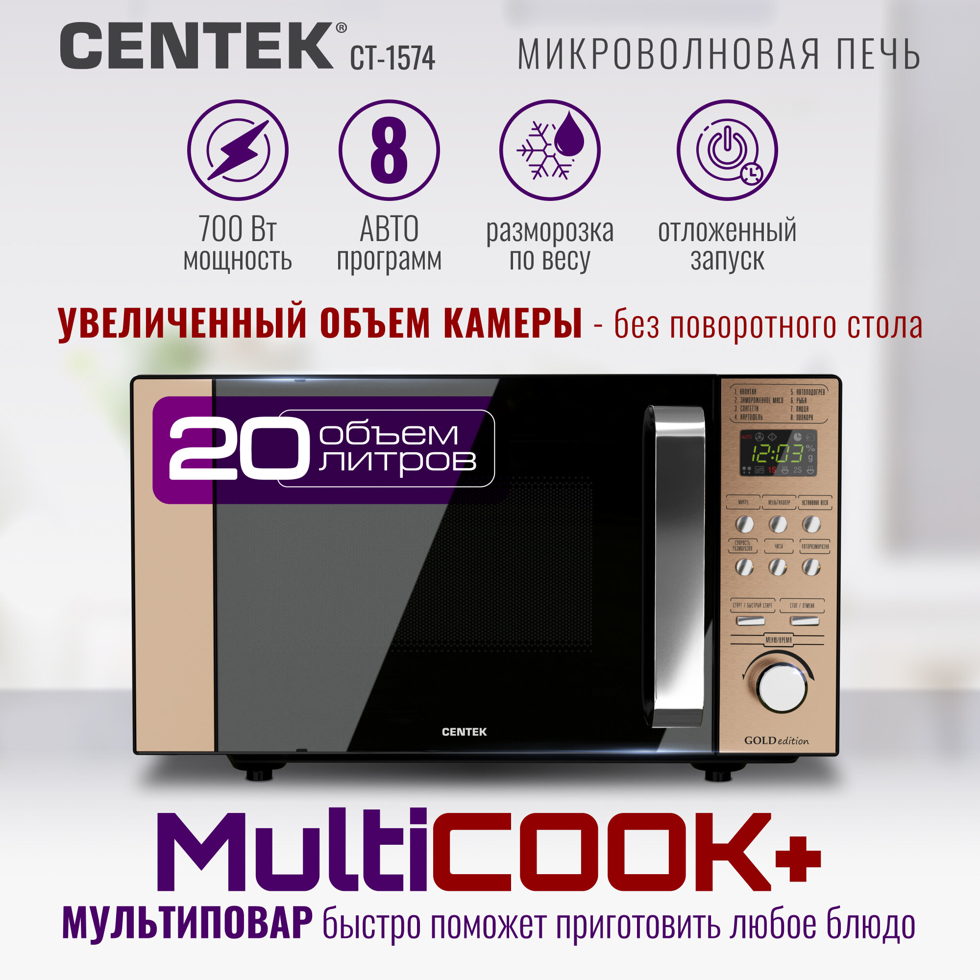 10 цен на Микроволновая печь CENTEK CT-1574: золото/ 700 Вт/ 20л/ 6 уровней мощности/без поворотного стола/микроволновка СВЧ