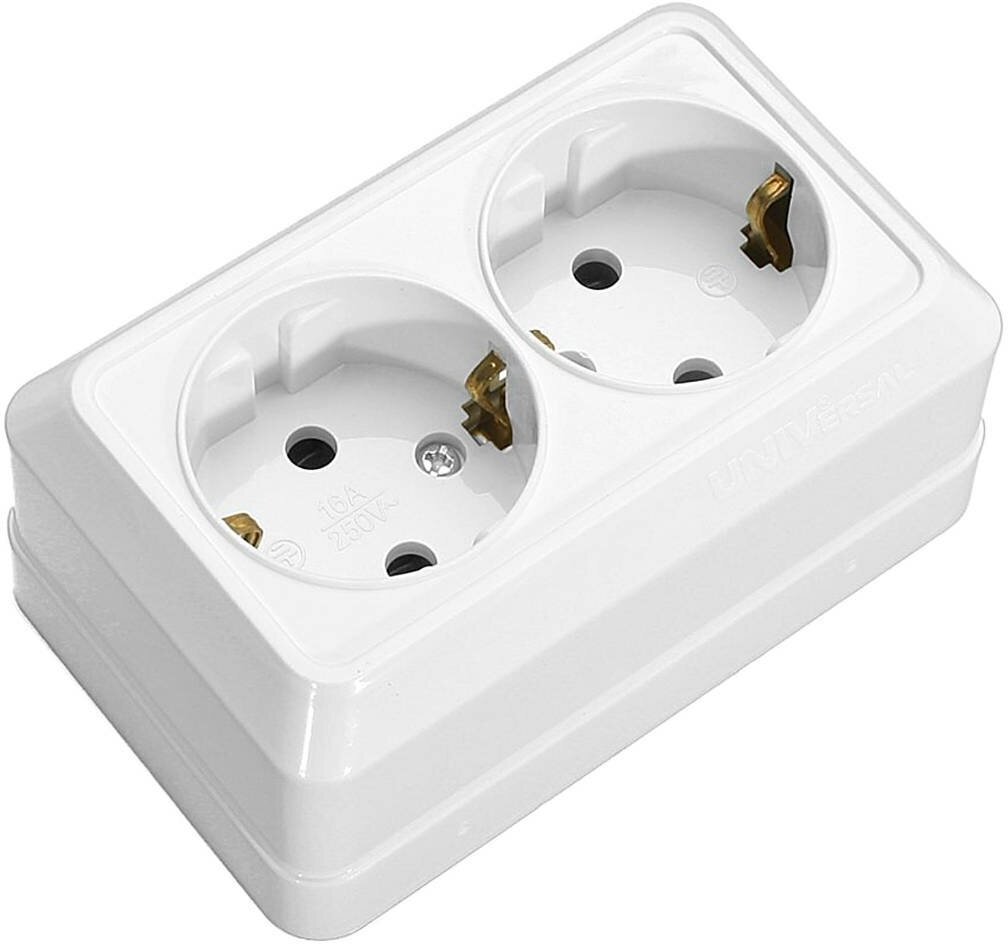 Розетка двухместная с заземлением, открытая установка "UNIVERSAL" 84107