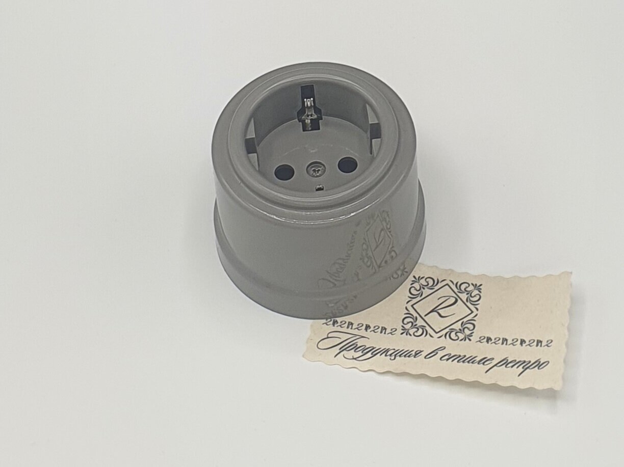 Розетка BIRONI Бирони ретро с заземлением, для наружного монтажа, пластик, цвет серебряный ВЕК B1-101-11, 728 ₽
