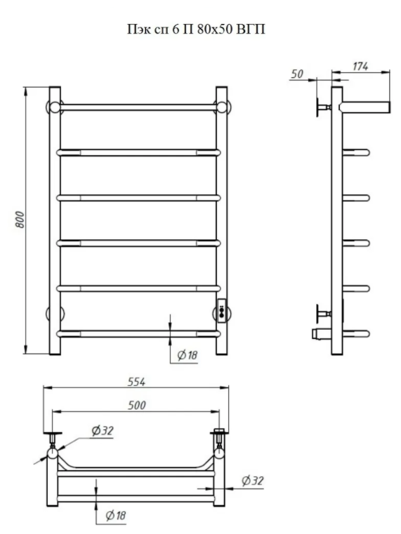 Полотенцесушитель электрический Пэк сп 6 80х50 32 мм