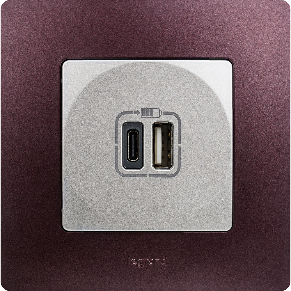 Legrand Etika, алюминий, зарядное устройство с USB разъемами A-C 672436 5 350 ₽