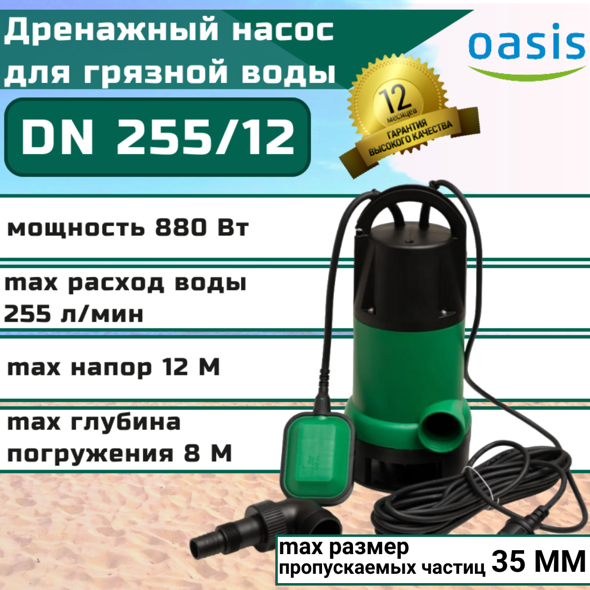 Насос дренажный OASIS DN 255/12 для грязной воды информация: