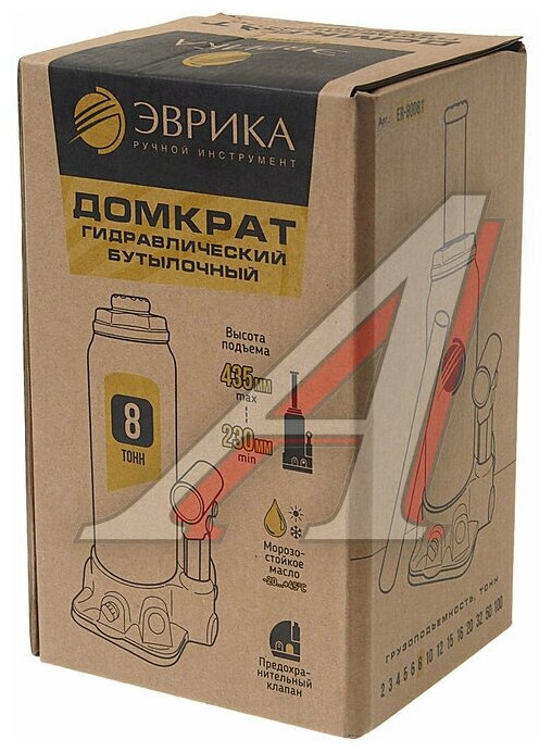 Эврика ER-80081 Домкрат бутыочный 8т 230-435мм с капаном (ремкомпект) эврика
