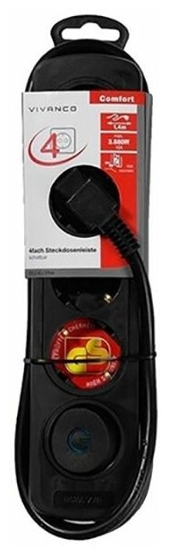 Отзывы на Электрический удлинитель серии Comfort-EKLS 4W с заземлением и защитой от детей. 4 розетки, 1,4 метра, черный цвет Vivanco 37644