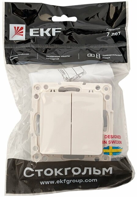 Механизм Выключателя 2-кл. 10А белый EKF PROxima Стокгольм (комплект из 2-х шт) 723 ₽