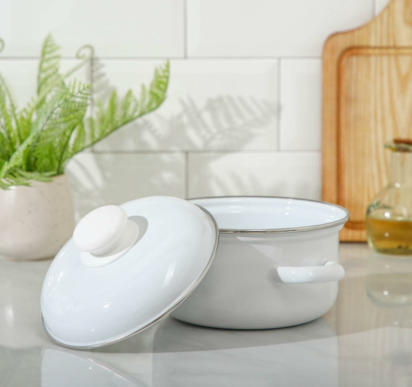 Кастрюля цилиндрическая, 1,5 л, d=16 см, эмалированная крышка, индукция, цвет белый (1 шт.)