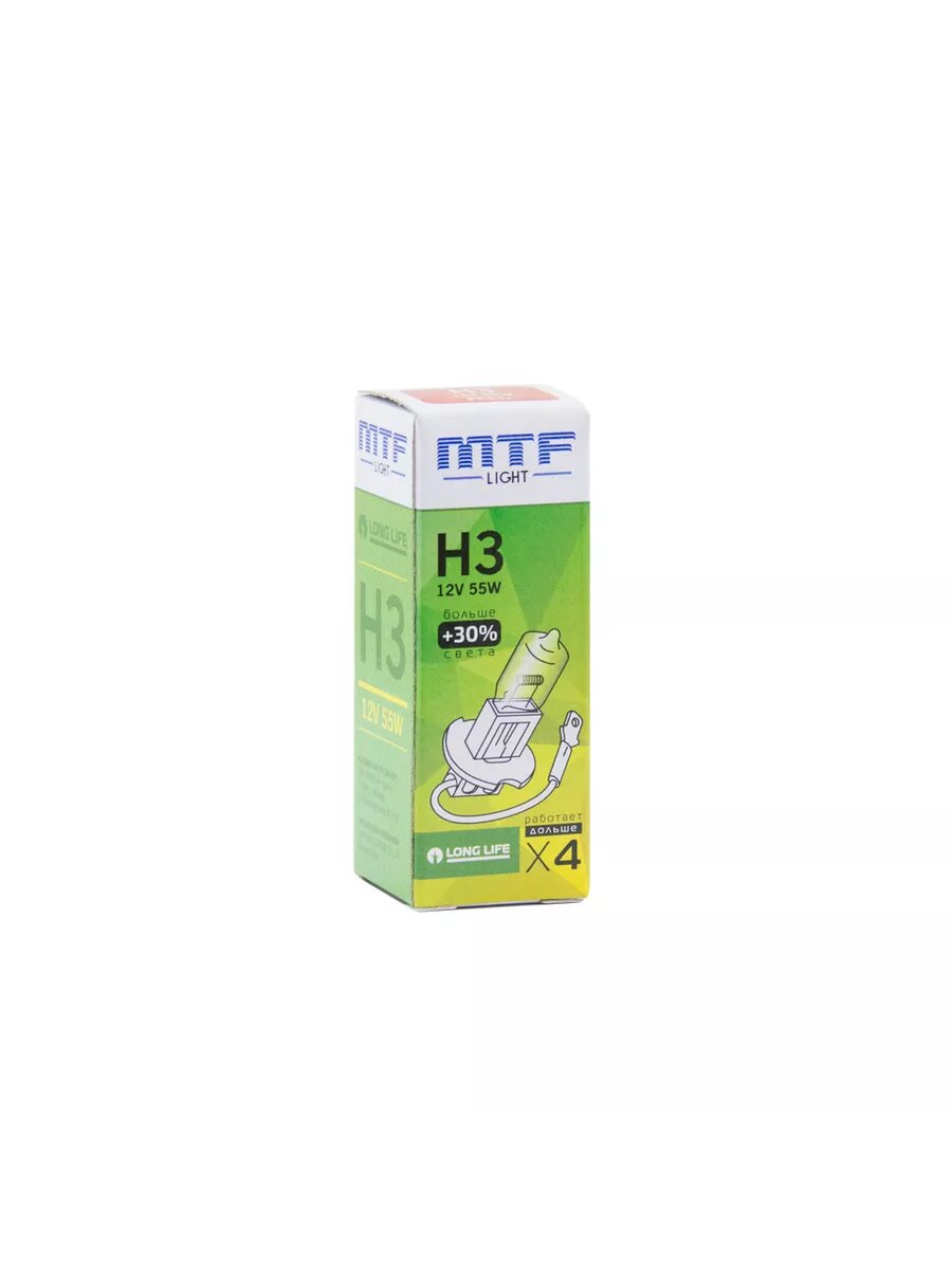 10 цен на Галогенные лампы H3, 12V, 55W, +30% LONG LIFE x4, 2шт.