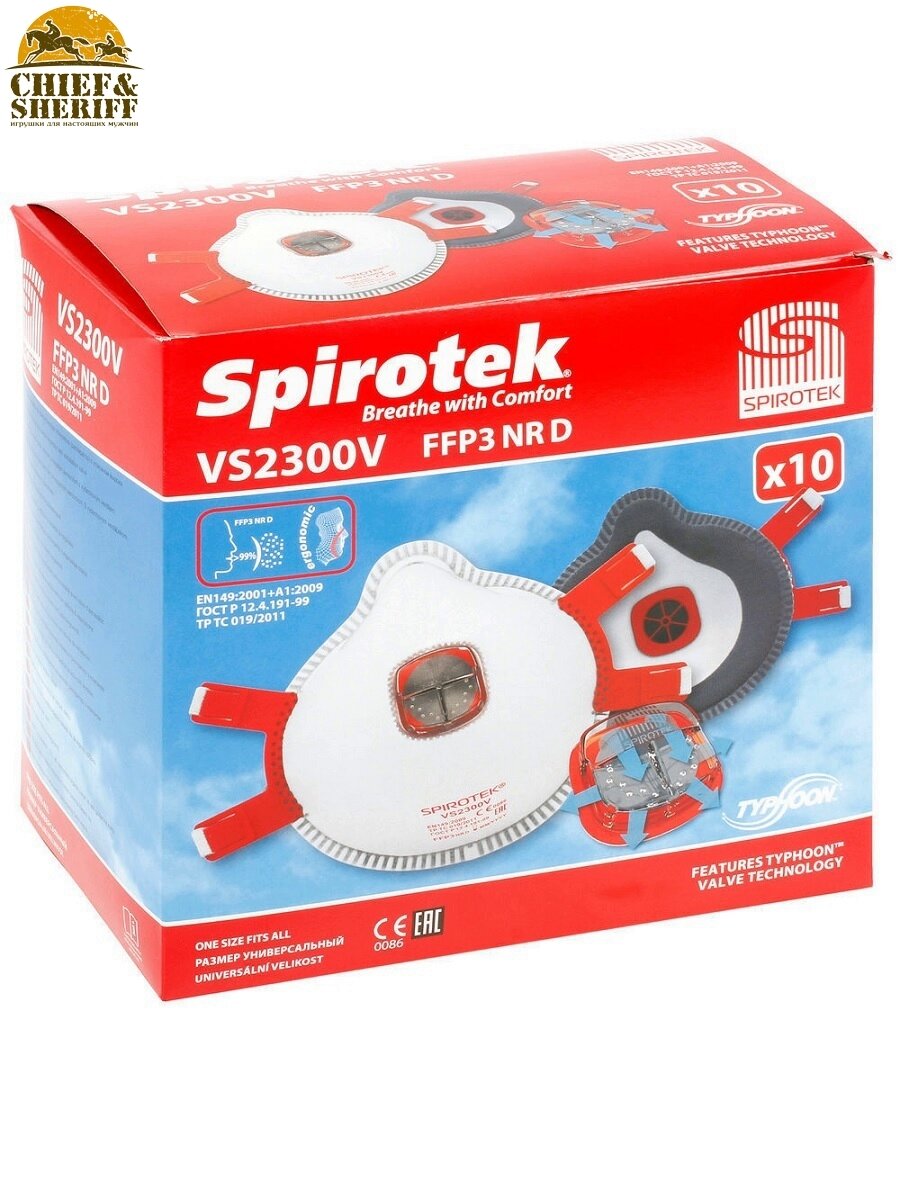 Респиратор SPIROTEK VS2300V FFP3 с клапаном, 10 шт