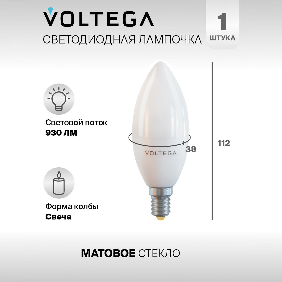 Отзывы на Лампочка светодиодная E14 форма свеча 10W нейтральный белый Voltega Simple Candle 4000K 1 штука