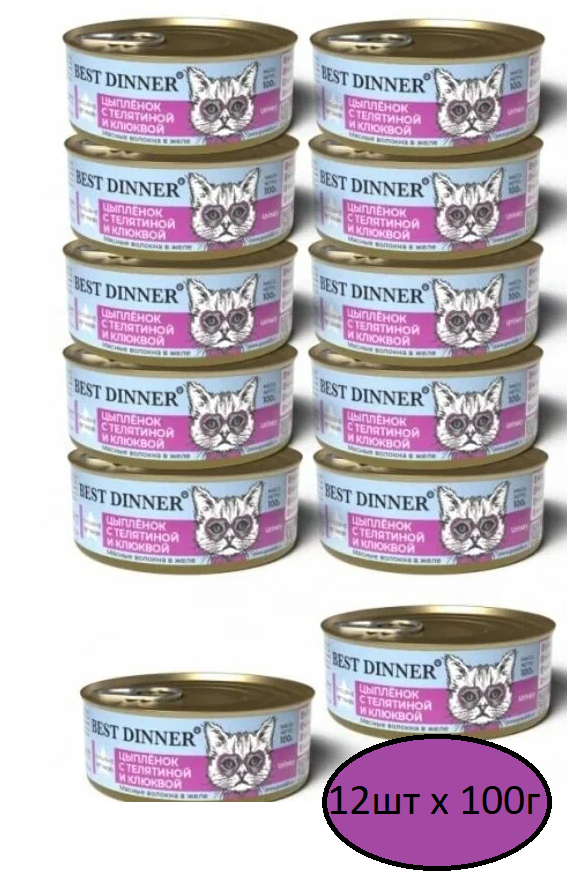 Консервы для кошек Best Dinner Эксклюзив Vet Profi, Цыпленок с телятиной и клюквой, 100г х 12шт информация: