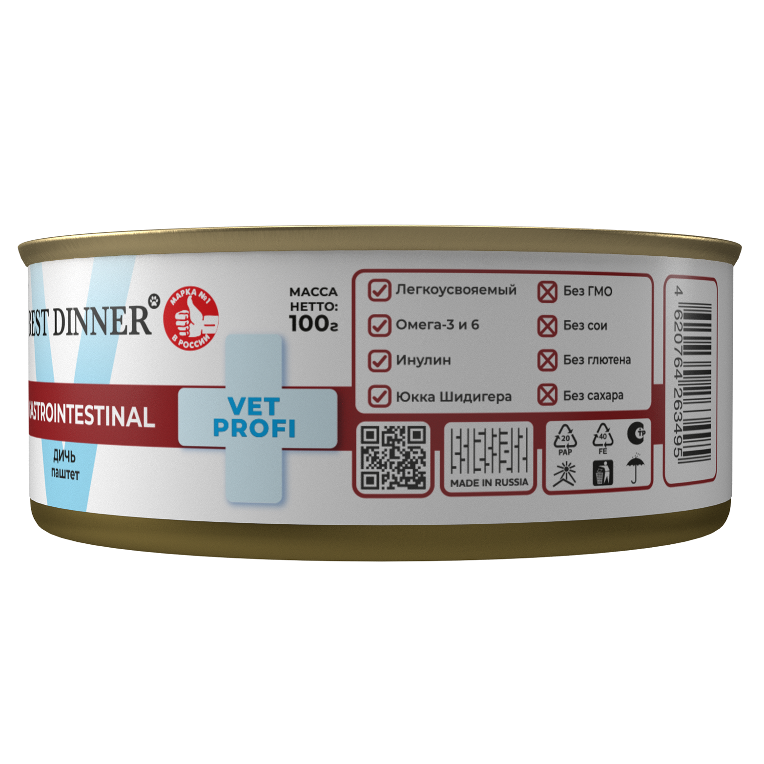 Корм BEST DINNER Vet Profi Gastrointestinal для кошек, паштет из дичи, при проблемах с ЖКТ 100гр информация: