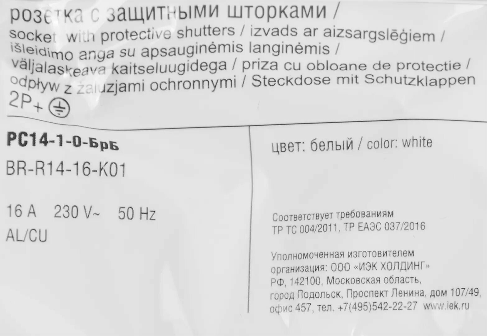 IEK BRITE Розетка с заземлением с защитными шторками 16А РС14-1-0-БрБ белый / IEK 4610084173314 информация: