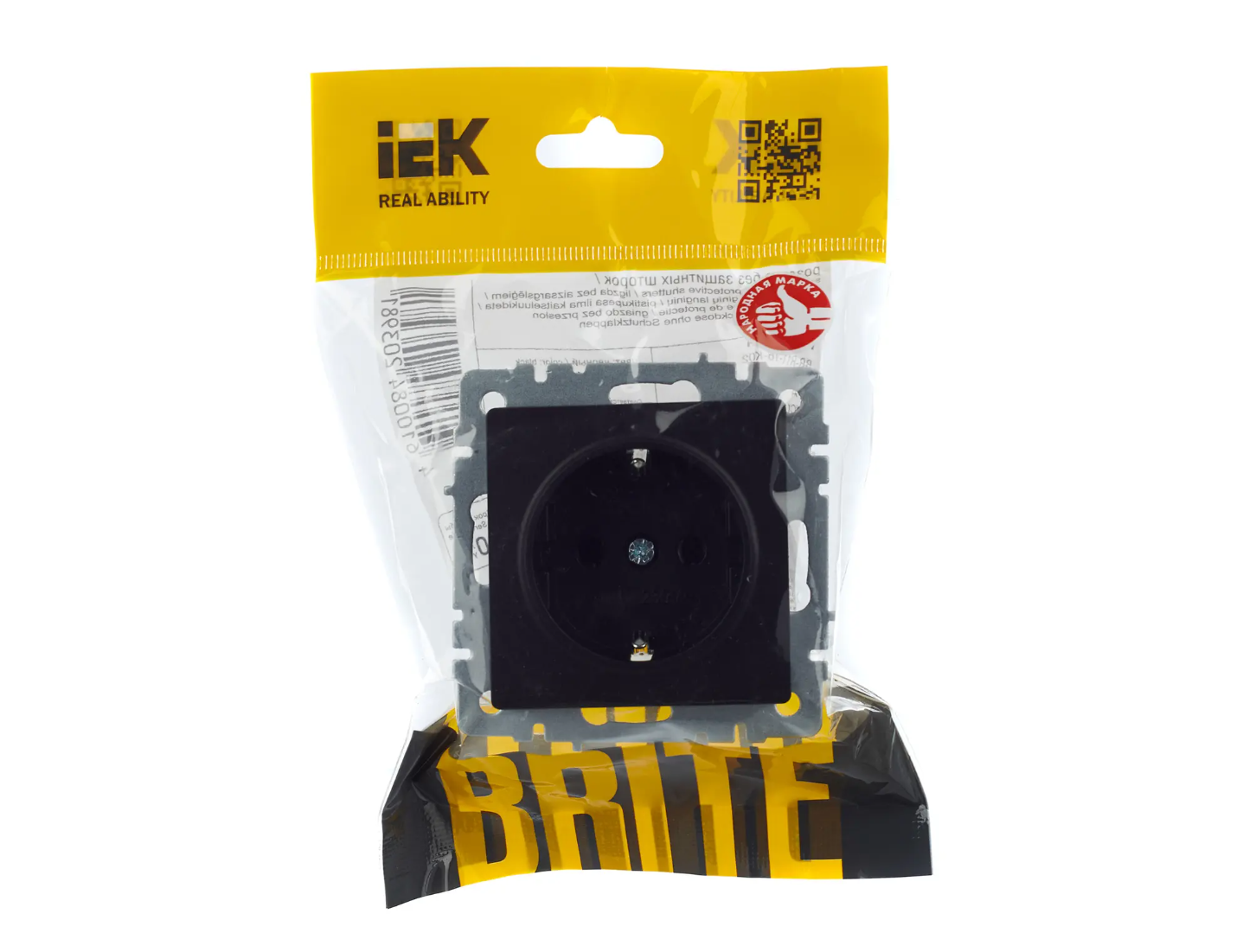 BRITE Розетка с заземлением с защитными шторками 16А РС14-1-0-БрЧ черный () IEK BR-R14-16-K02 (1 шт.)
