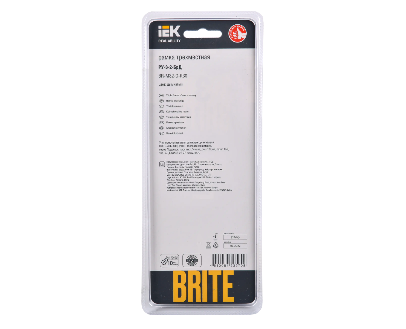 10 цен на IEK BRITE Рамка 3-мест. РУ-3-2-БрД стекло дым.