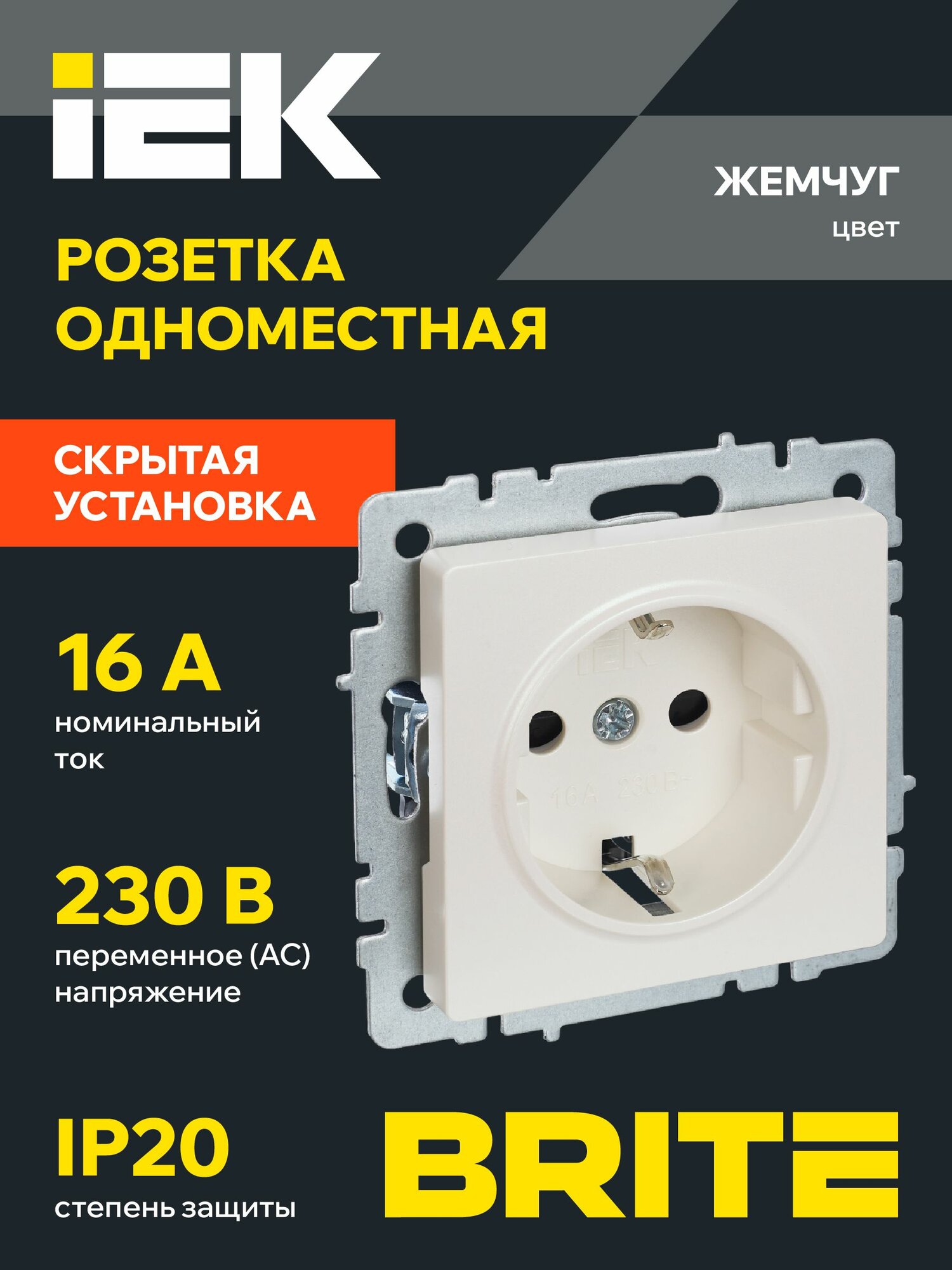 BRITE Розетка с заземлением с защитными шторками 16А РС14-1-0-БрЖ жемчуг BR-R14-16-K36 IEK информация: