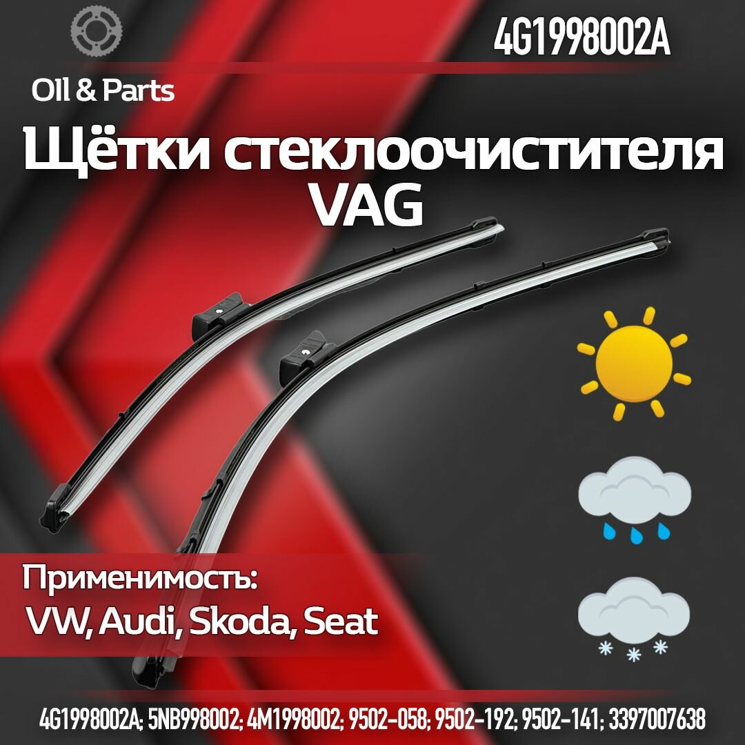 Щетка стеклоочистителя VAG 650/530 мм бескаркасная / Комплект 2 шт / арт. 4G1998002A информация: