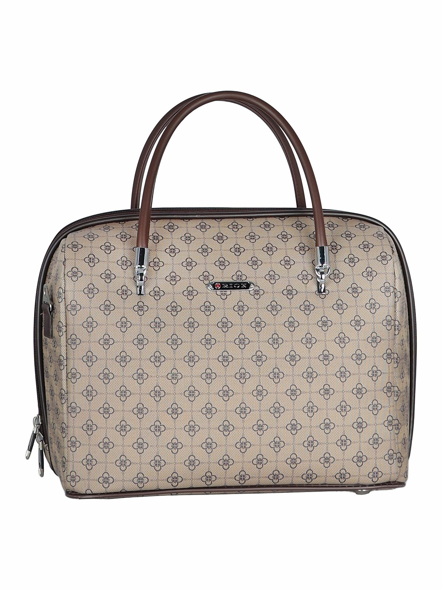Дорожная сумка с ремнем на ручку чемодана Рион+ (RION+) / ручная кладь для самолета / саквояж , R240, Тканевая, 20 литров, коричневый-орнамент