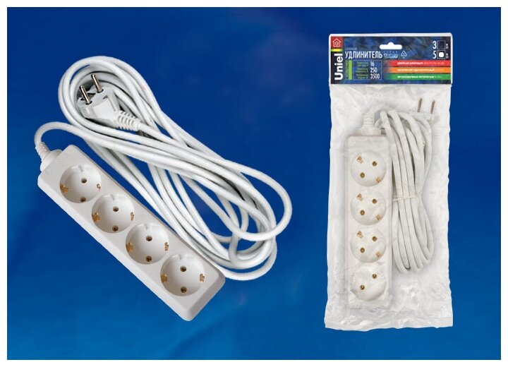 Отзывы на S-GCD4-5 Удлинитель Uniel серии Стандарт, с/з, 4 гн, шнур 5 м, 1шт
