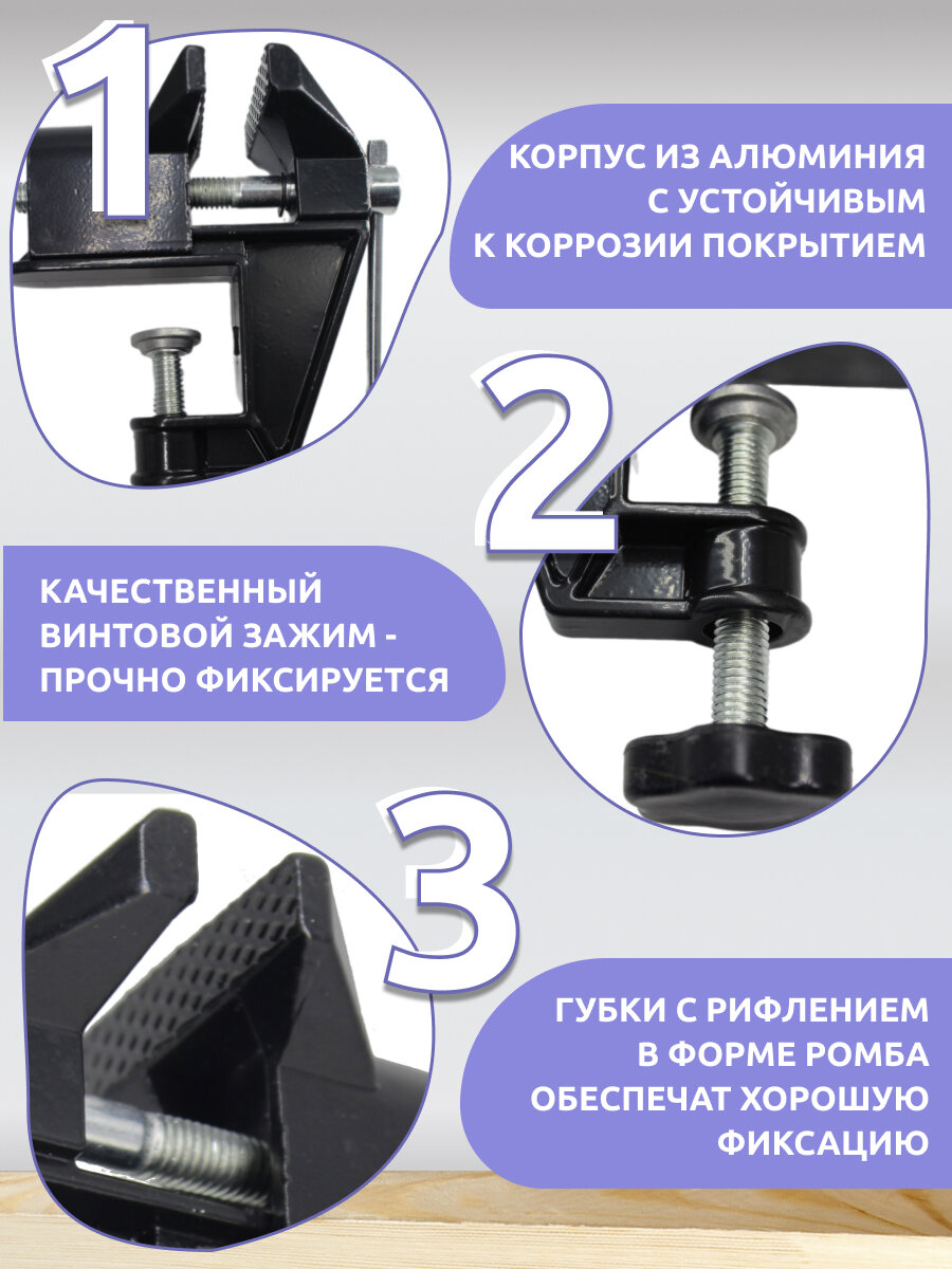 10 цен на Тиски слесарные мини губки 60 мм из алюминия