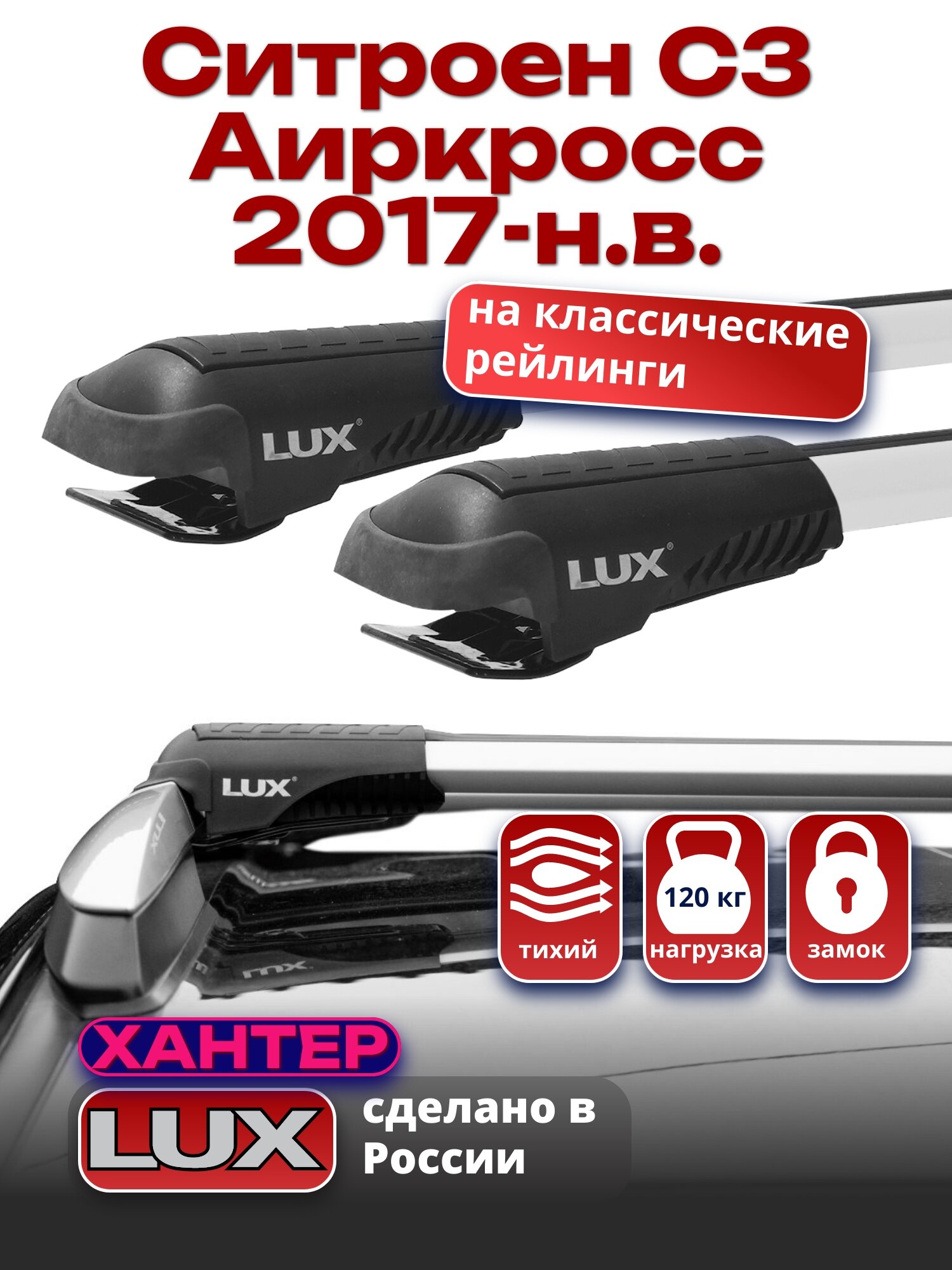 Багажник на крышу Ситроен С3 Аиркросс 2017-2024 на рейлинги, LUX хантер информация: