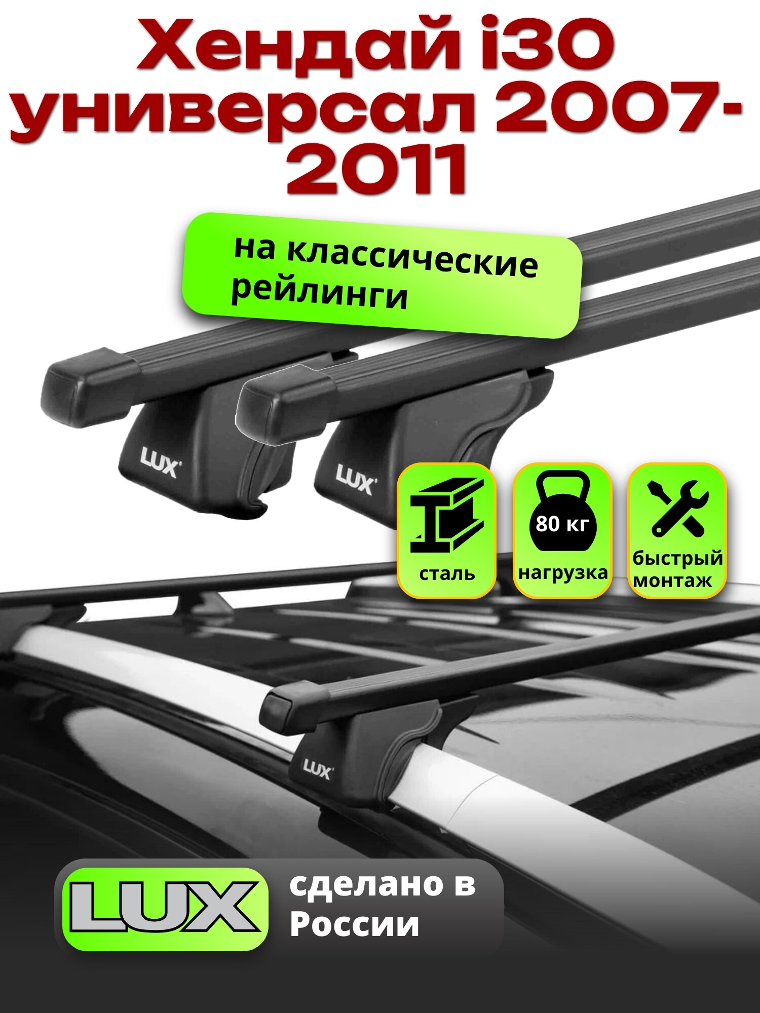 Багажник на крышу Хендай i30 универсал 2007-2011 на рейлинги, черный, LUX классик информация: