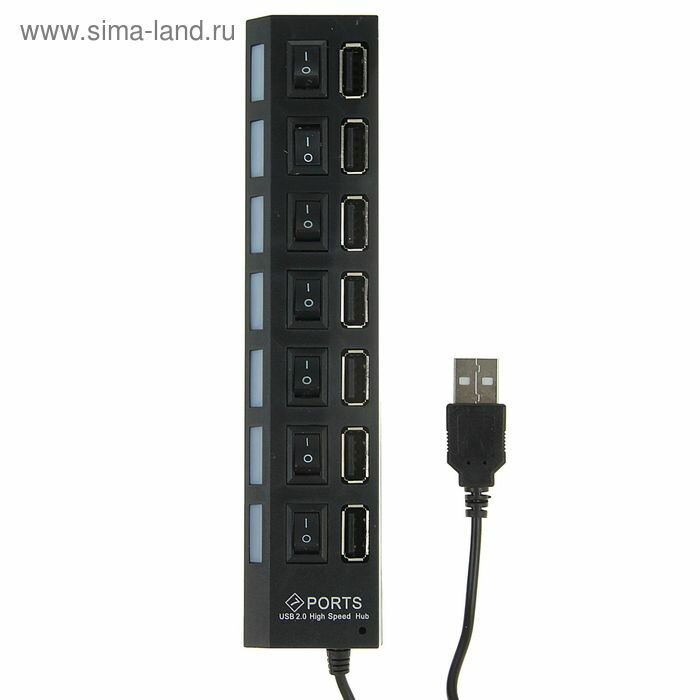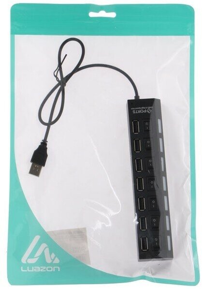 USB-разветвитель Luazon, 7 портов с выключателями, USB 2.0, черный 855978 информация: