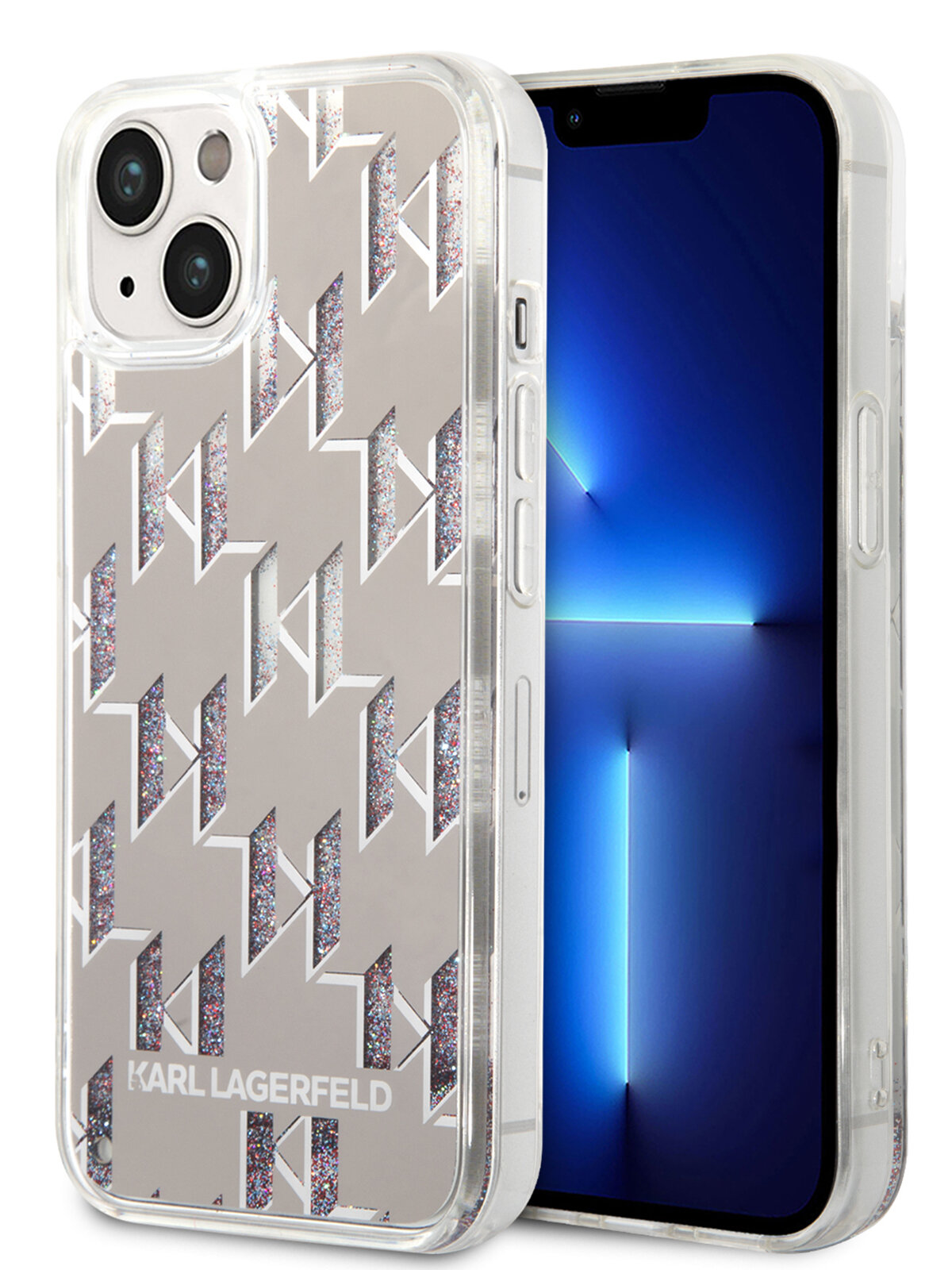 Чехол Karl Lagerfeld Liquid glitter Monogram Hard для iPhone 14, цвет Серебристый (KLHCP14SLMNMS)