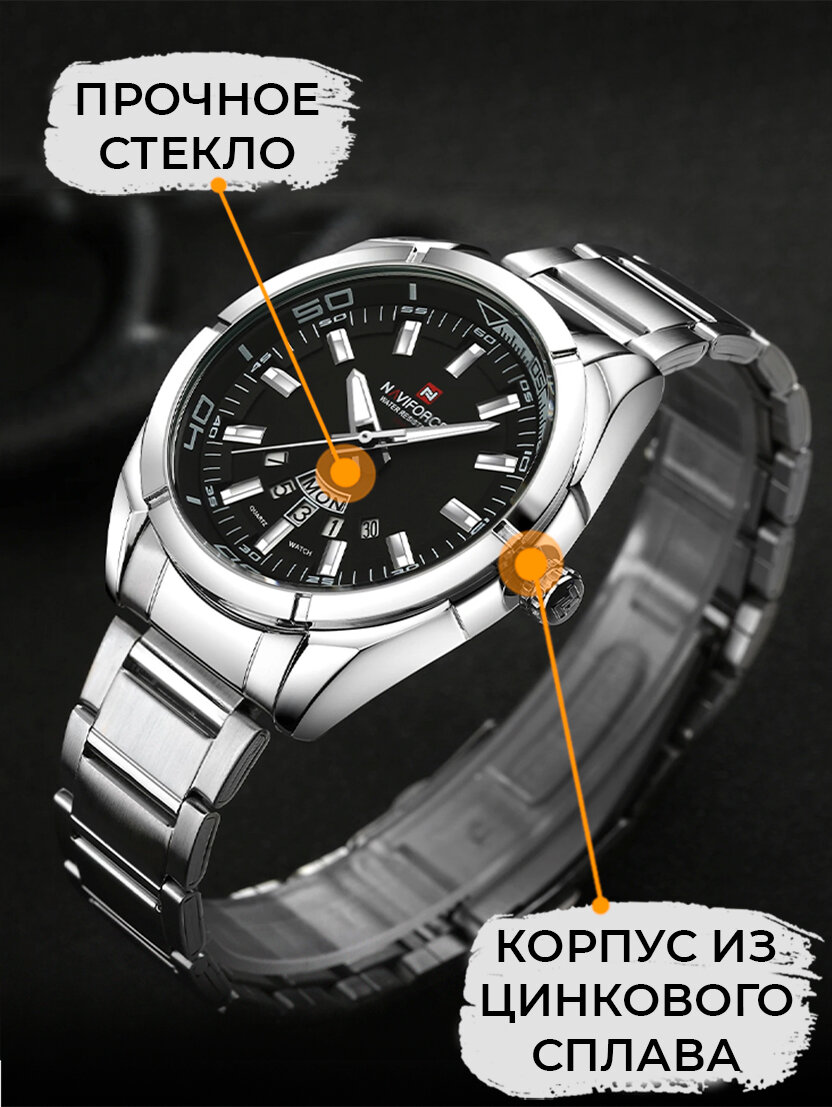 Отзывы на Часы наручные мужские кварцевые Naviforce металлические, круглые, серебристые/черные