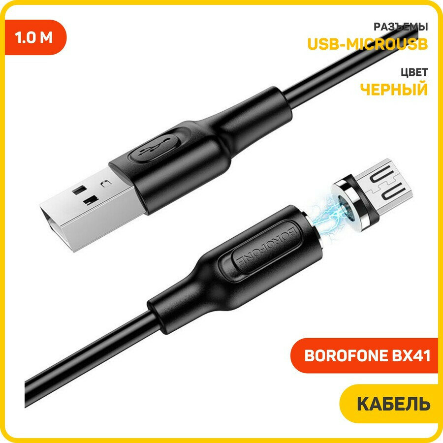 Кабель Borofone BX41, microUSB - USB, магнитный, 2.4 А, 1 м, PVC оплётка, чёрный информация: