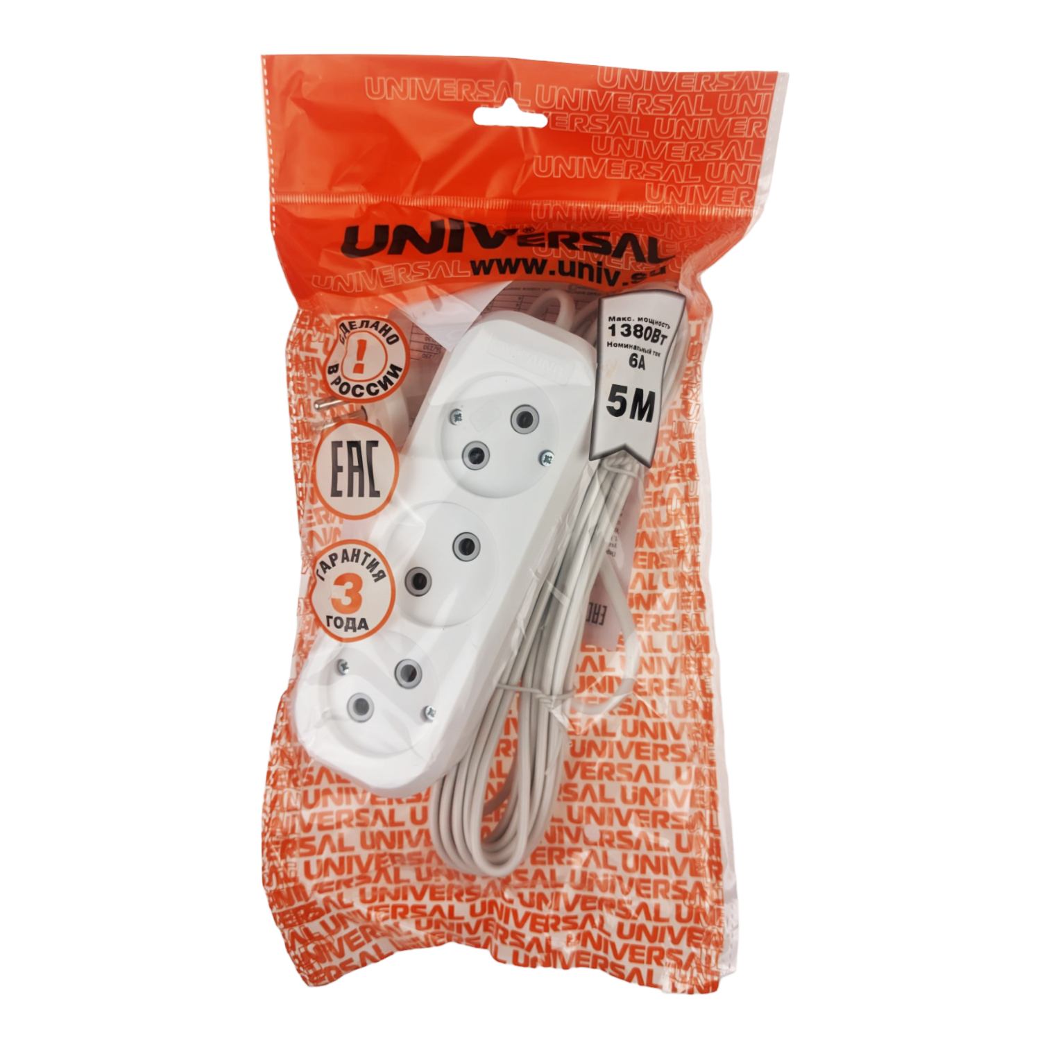 Удлинитель 3 гнезда 5м б/з У6-639 (UNIVersal), арт. 9631934 331 ₽
