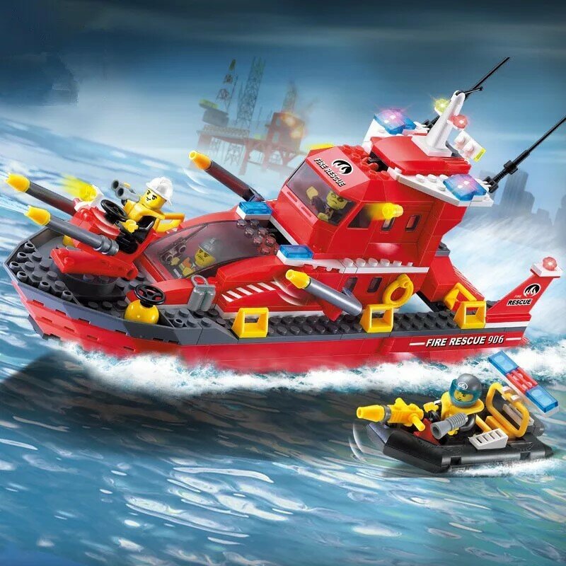 Конструктор пластиковый серии Пожарная служба "Спасательный пожарный катер" 340 деталей Qman 906 информация: