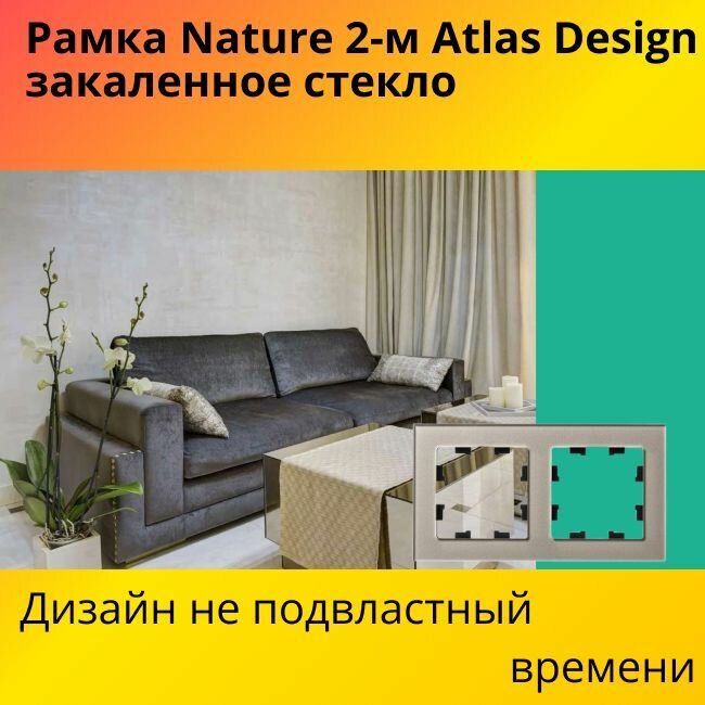 Рамка двойная для розеток и выключателей Systeme Electric Atlas Design Nature закаленное стекло шампань ATN320502 - 2 шт. информация: