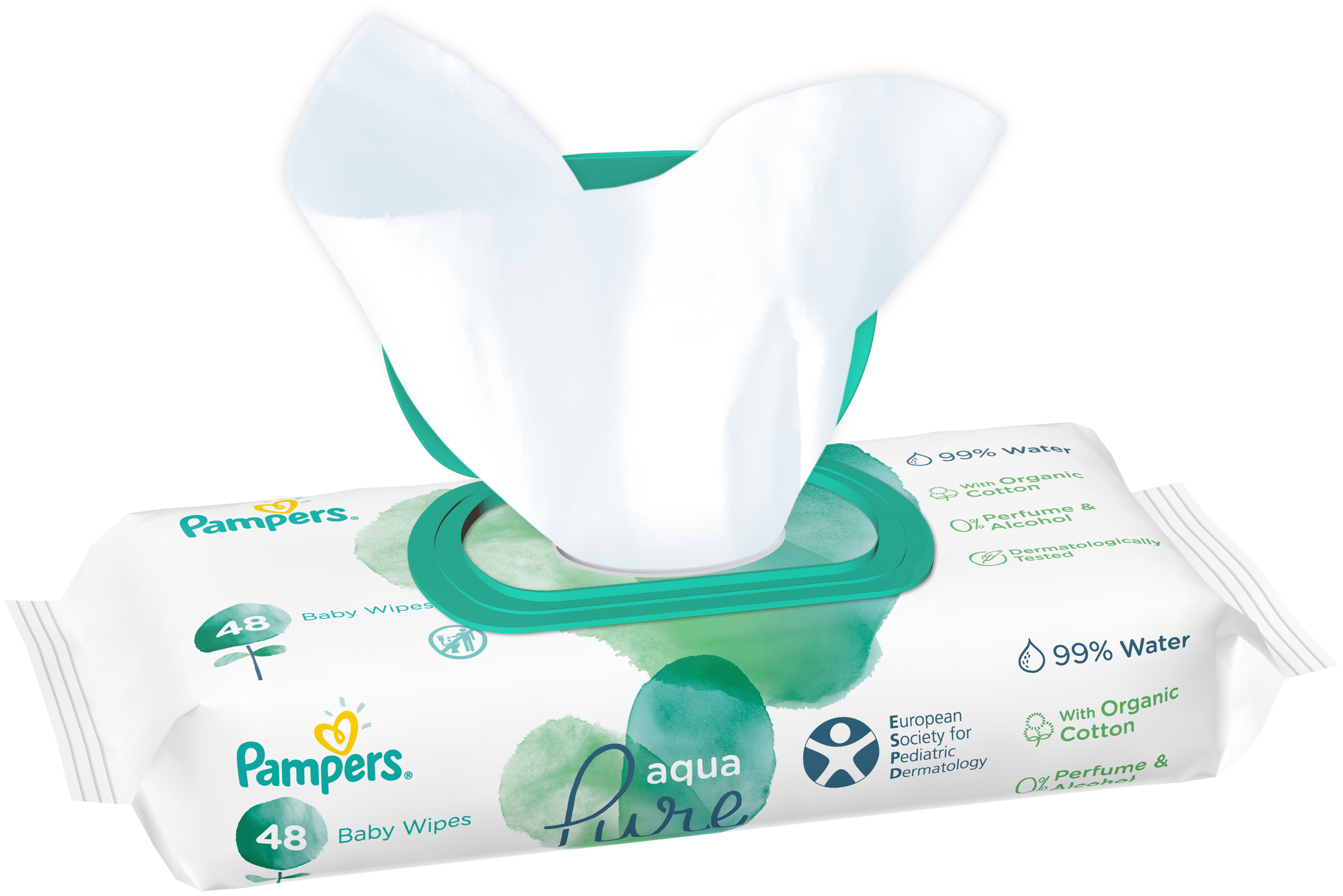 Влажные салфетки Pampers Aqua Pure, пластиковая крышка, 48 шт.