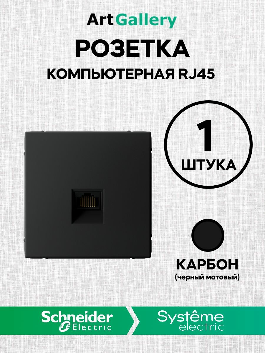 Розетка Systeme Electric (schneider Electric) компьютерная ArtGallery RJ45 кат.6A механизм карбон, GAL001086 информация: