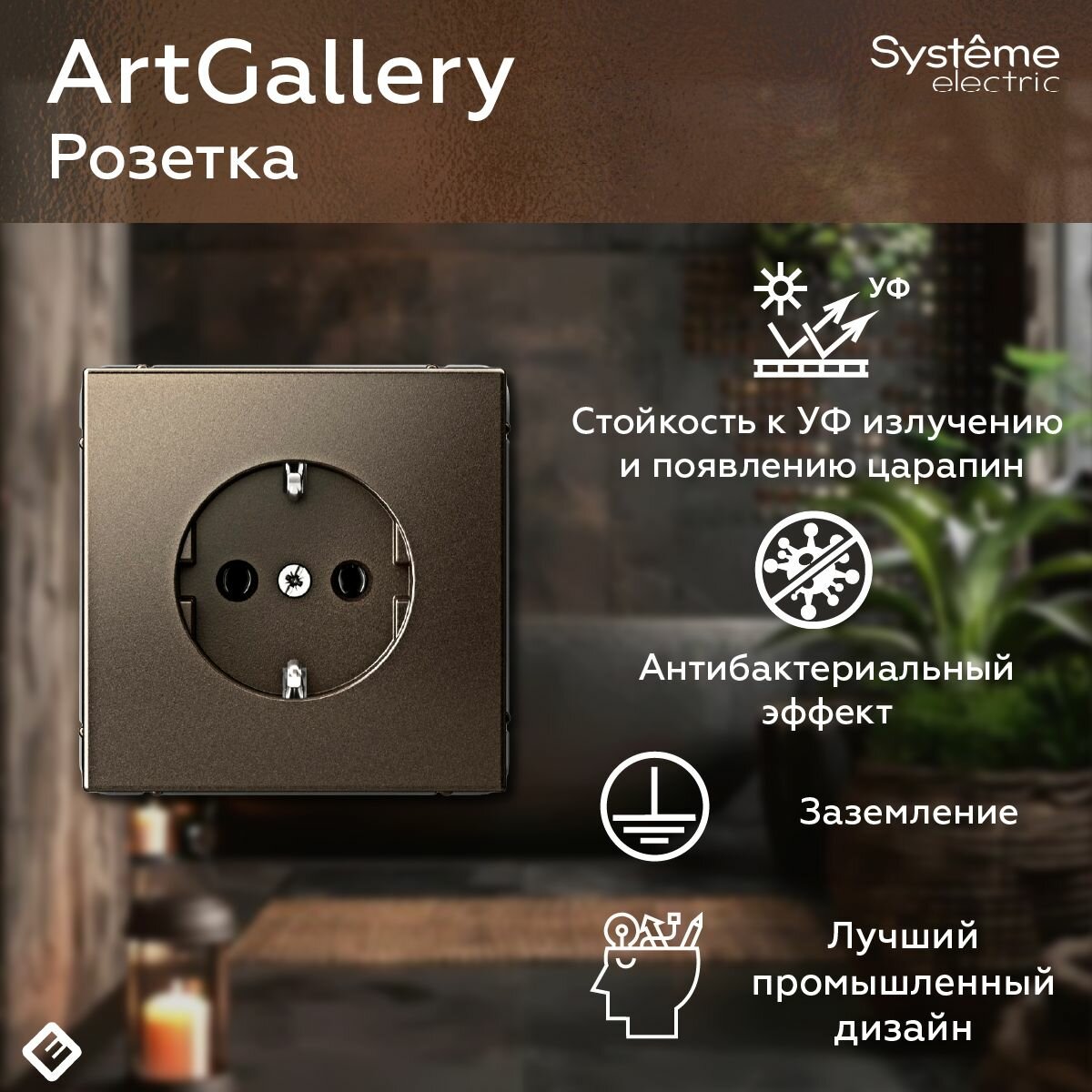 Отзывы на Розетка с заземлением, 16А, механизм, цвет Мокко Systeme Electric ArtGallery