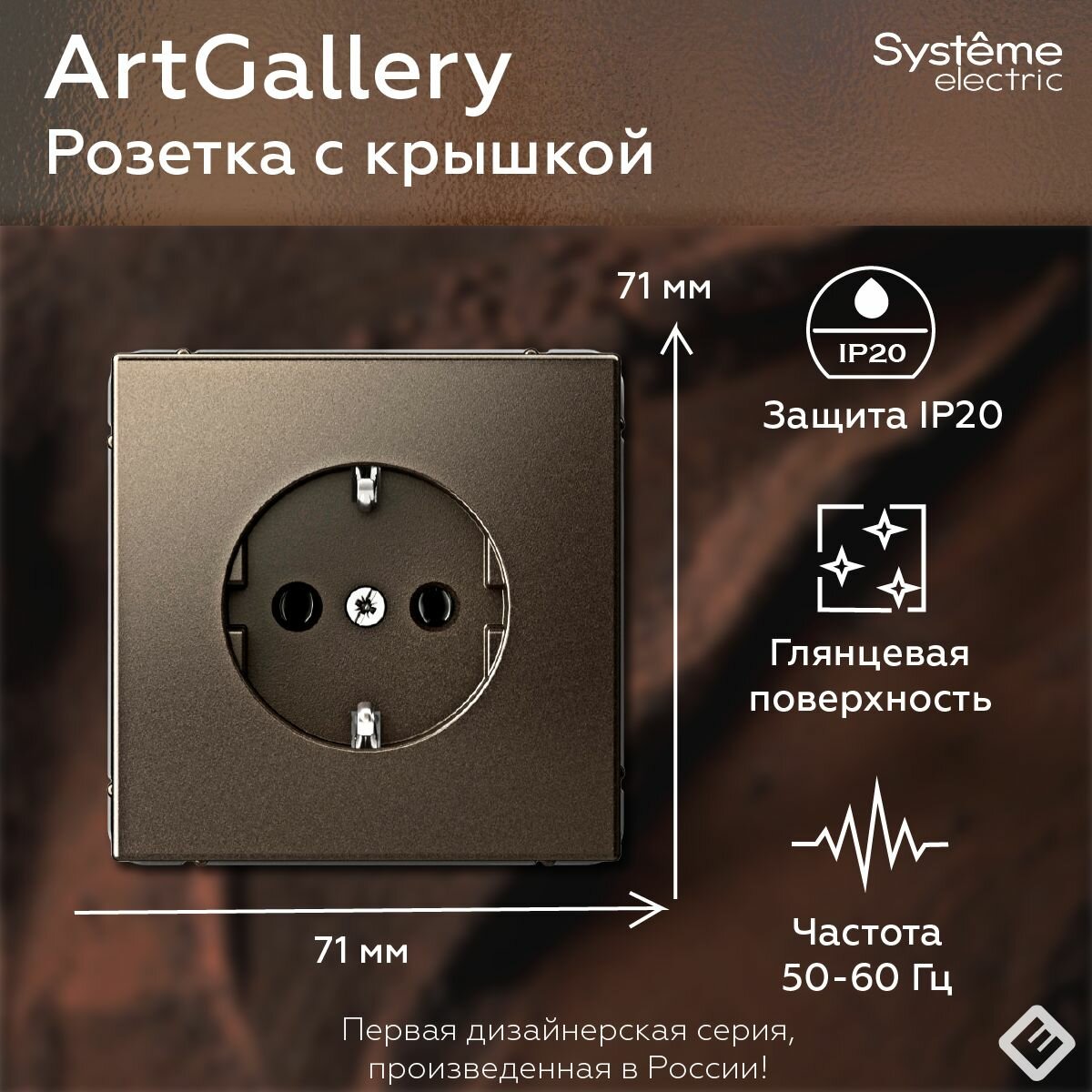 Розетка с заземлением, 16А, механизм, цвет Мокко Systeme Electric ArtGallery информация: