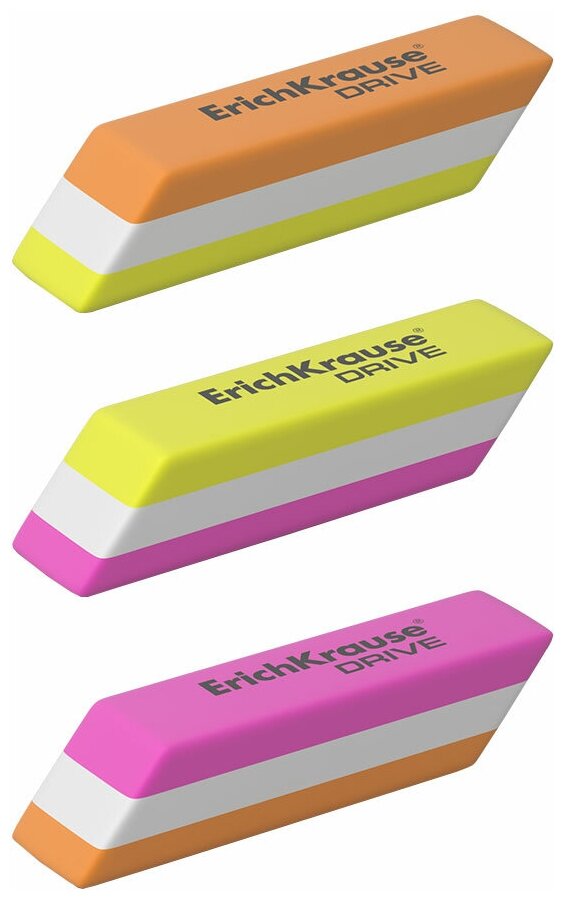Отзывы на Набор ластиков 3 штуки ErichKrause Drive, 57 х 15 х 13 мм, мягкие, гипоаллергенные, прямоугольные, в .