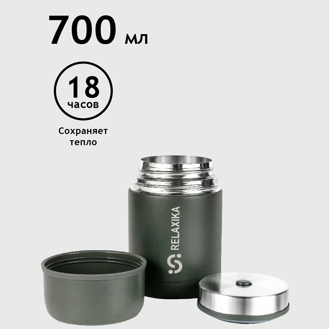 Термос Релаксика Relaxika с широким горлом для еды (0,7 литра), хаки, R301.700.8 2 490 ₽