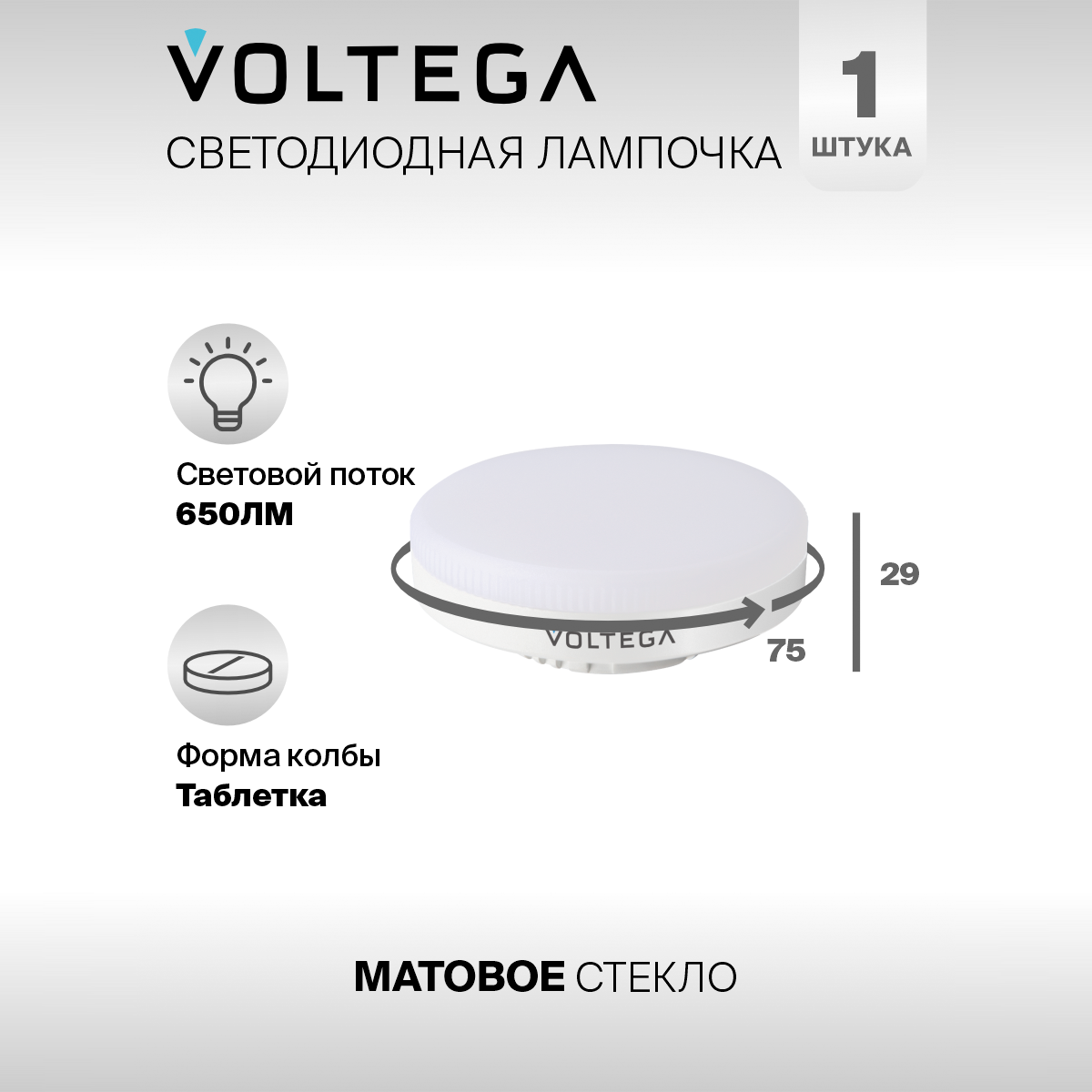 Отзывы на Лампочка светодиодная GX53 форма таблетка 9W нейтральный свет Voltega Simple 4000K 1 штука