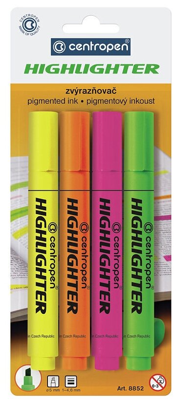 Набор маркеров-текстовыделителей Centropen 8852 (1-4.6мм, цвета неоновые) 4шт. (8852/4PVC) информация: